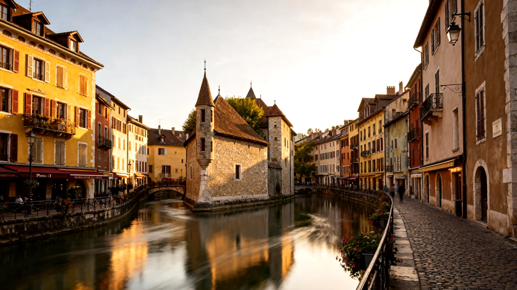 Das historische Zentrum von Annecy ist ein Freilichtmuseum, das keinen Eintrittspreis verlangt. Der Palais de l’Isle, ein burgähnliches Gebäude mitten im Thiou-Kanal, ist das fotogenste Wahrzeichen der Stadt. Im Februar, wenn sich die Wintersonne im Wasser bricht und nur wenige Menschen die Brücken bevölkern, ergeben sich spektakuläre Fotomotive ohne störende Menschenmassen.