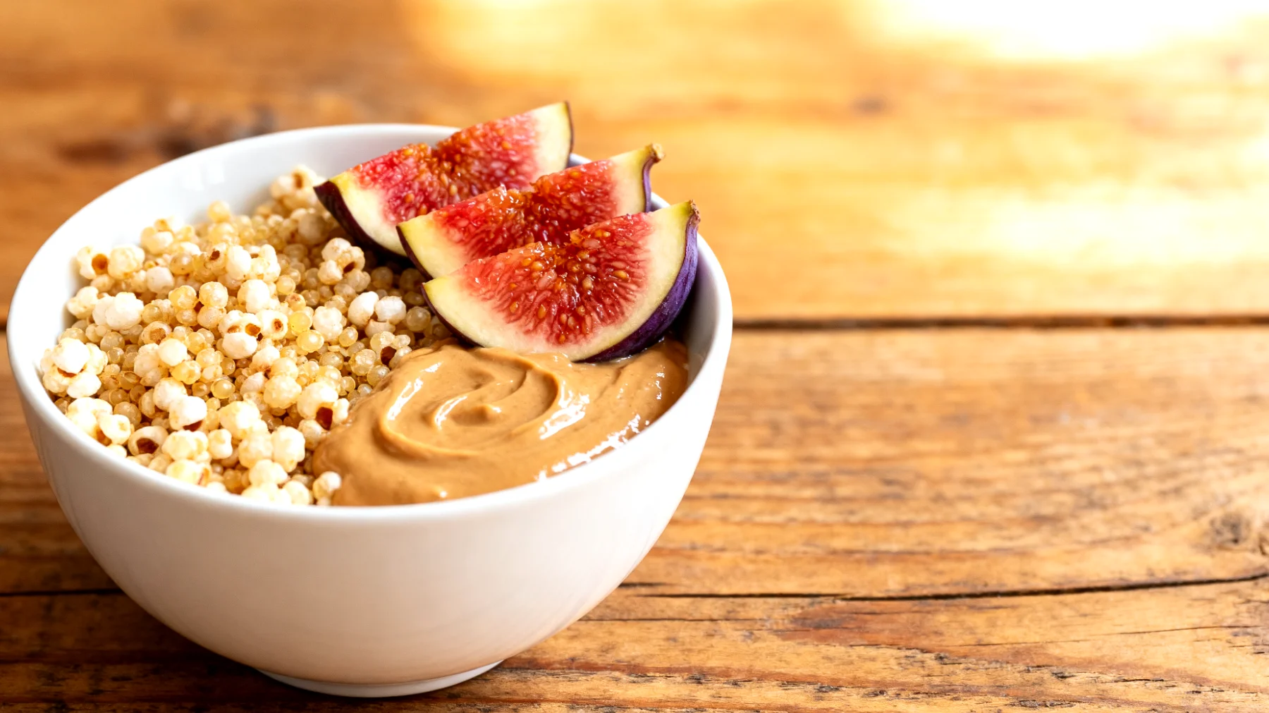 Die Zubereitung könnte simpler nicht sein: Amaranth-Pops in eine Schale geben, Mandelmus darüber verteilen und mit klein geschnittenen Feigen toppen. Wer morgens wenig Zeit hat, kann die Portion auch abends vorbereiten und in einem verschließbaren Behälter mitnehmen. Das Mandelmus wirkt wie ein natürlicher Kleber und hält die Pops zusammen.