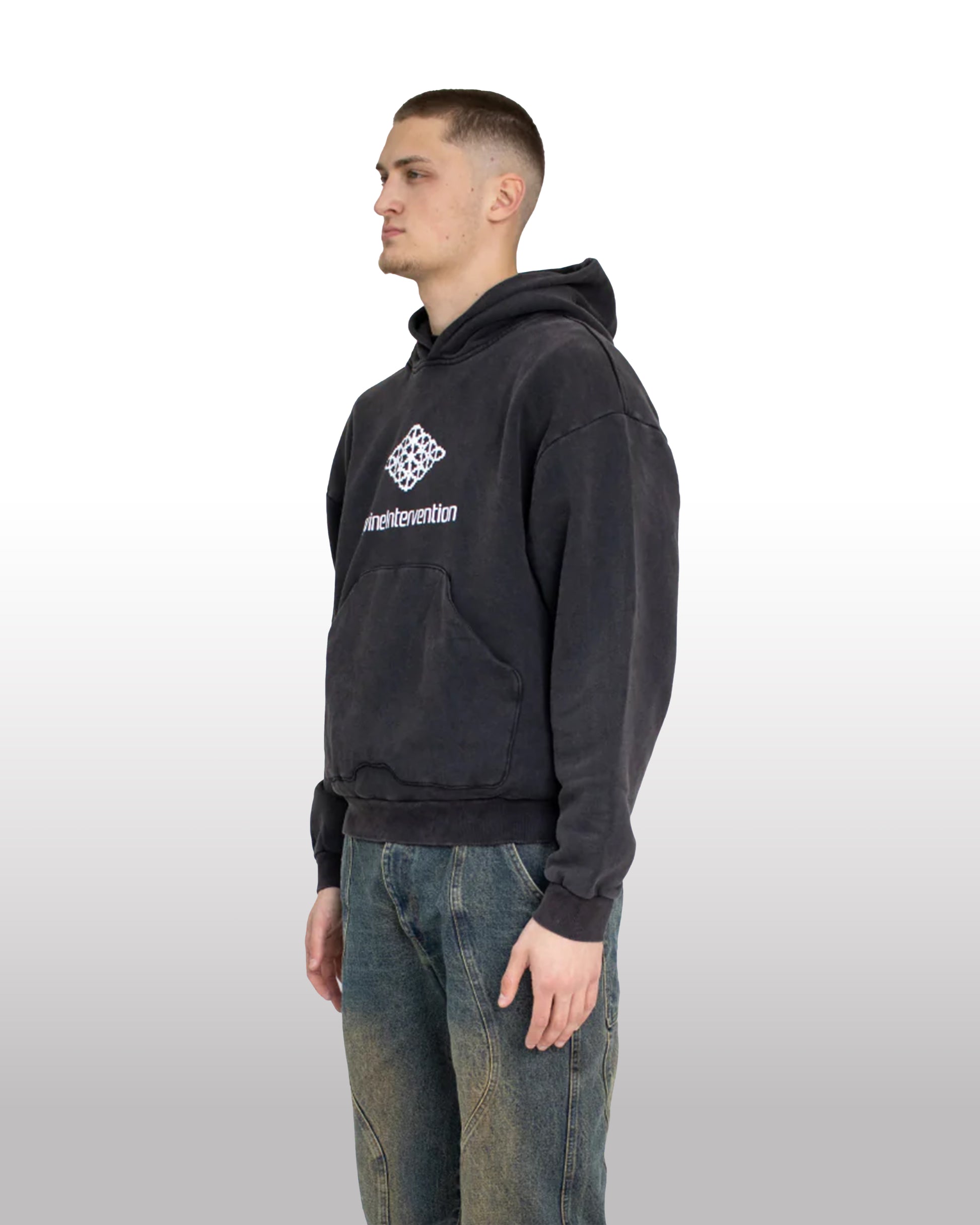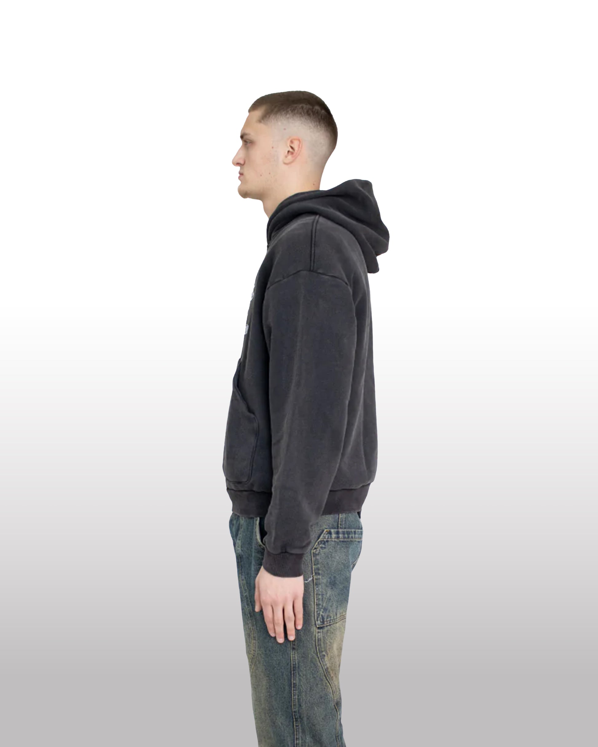 - Washed Black Hoody with Loose Fit